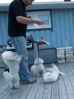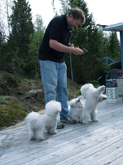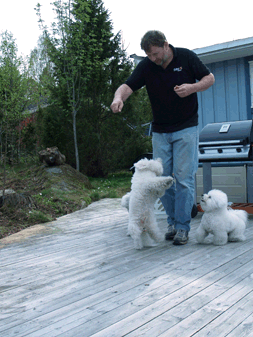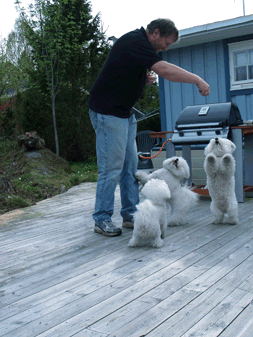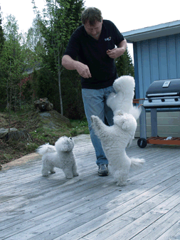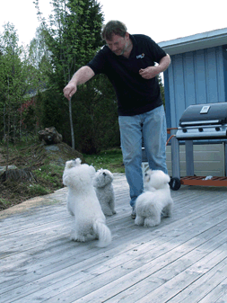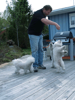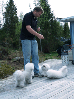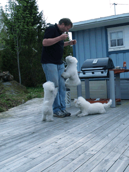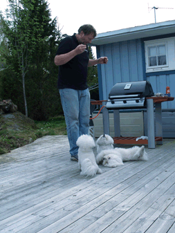 | Hjelper det ikke å danse til far, ja så ruller jeg rundt, da kommer pølsebiten.... | ||
