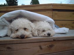 | Nala og Rose koser seg i sitt nye kose hus | ||