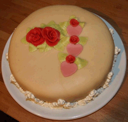 | Rund marsipankake med hjerte | ||