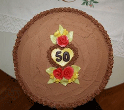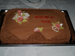 | Sjokolade kake med Marsipan pynt | ||