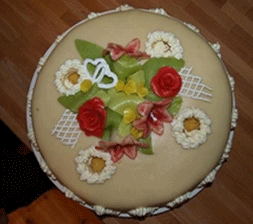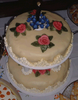| Bryllups kake. Saftig sjokoladekake med marsipan trekk | ||