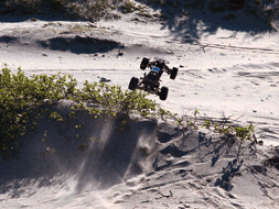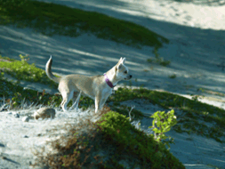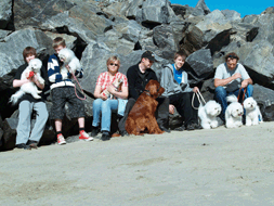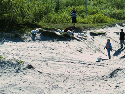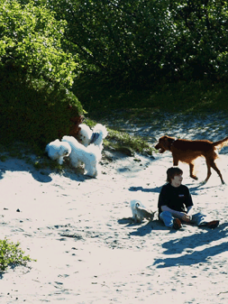 | Jonas koser seg med hundene. | Hundene lekte og koste seg i den fine sanden | |