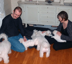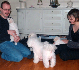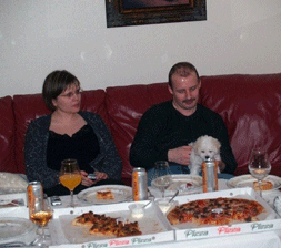 kom hjem Mamma Berit og pappa Jarle kom helt fra Bjørnevatn som ligger nesten på grensen til Russland for å hente sin etterlengtede prinsesse, som de kaller henne. Med kansellerte fly på Gardermoen og snø kaos, fikk vi en kjempe hyggelig kveld hjemme på Flateby før flyet gikk nordover neste dag. Det satte vi pris på. Hjemme ventet "Bichon" Lita, "Irsk Setter" Birk og sønnene Even, Martin og Jonas. | ||