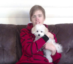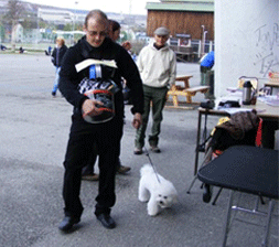 | Her er Elma kommet hjem til Kirkenes | Jonas koser med Elma | |