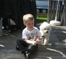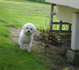 sammen med matmor Eva og er blitt skikkelig gårds hund på